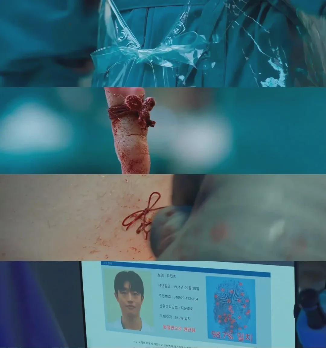 尸检过程中,势贤从尸体里发现了半根手指,而且凶手蝴蝶结系绳法和势贤缝合尸体的蝴蝶结系法一致,再一次印证,这个连环杀人案和父亲脱不了干系。