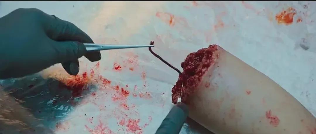 据尸检结果得知,死因为一次性扭断脖子,其右眼在死后被摘除,右眼孔洞还被凶手塞满了活力满满的蛆虫。(太过血腥,就不放剧照了)